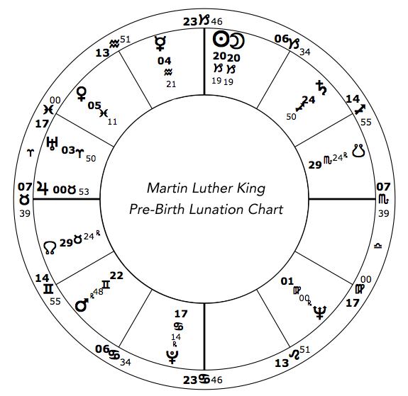 In the final part of this study we’ll have a look at Dr King’s first post-natal Lunation chart covering his life from 1954 until his assassination in 1968.